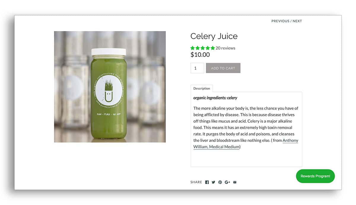 At Amy’s retail stores, she’s already developed a steady, loyal customer base, and a stellar reputation for serving top quality products. But that’s confined to one small corner of the world. She doesn’t have national brand recognition. She needed to find a way for her local customers vouch for Purée, informing potential customers in other places about how superb her juice was.