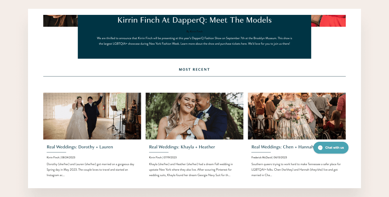 They meticulously craft blog articles featuring authentic wedding stories sourced from customer interviews. Through these interviews, prospective buyers can discover why these customers chose Kirrin Finch to design their special wedding suits and their unique experiences with Kirrin Finch's services.