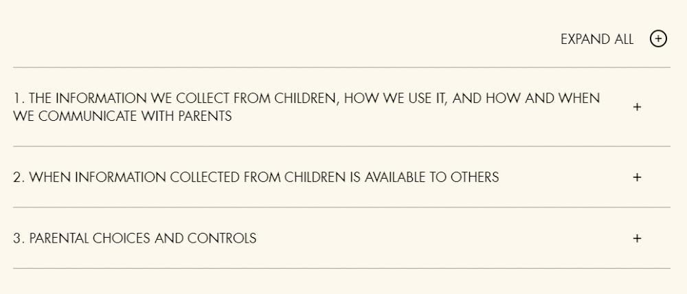 For example, The Walt Disney shop has an entire page dedicated to children’s online privacy policy.