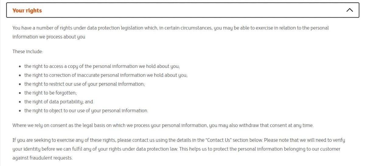 If your business extends such rights to customers, consider mentioning it on the privacy policy. You could add the statement alongside the contact details and ask your customers to get in touch if they want to exercise their data control rights.