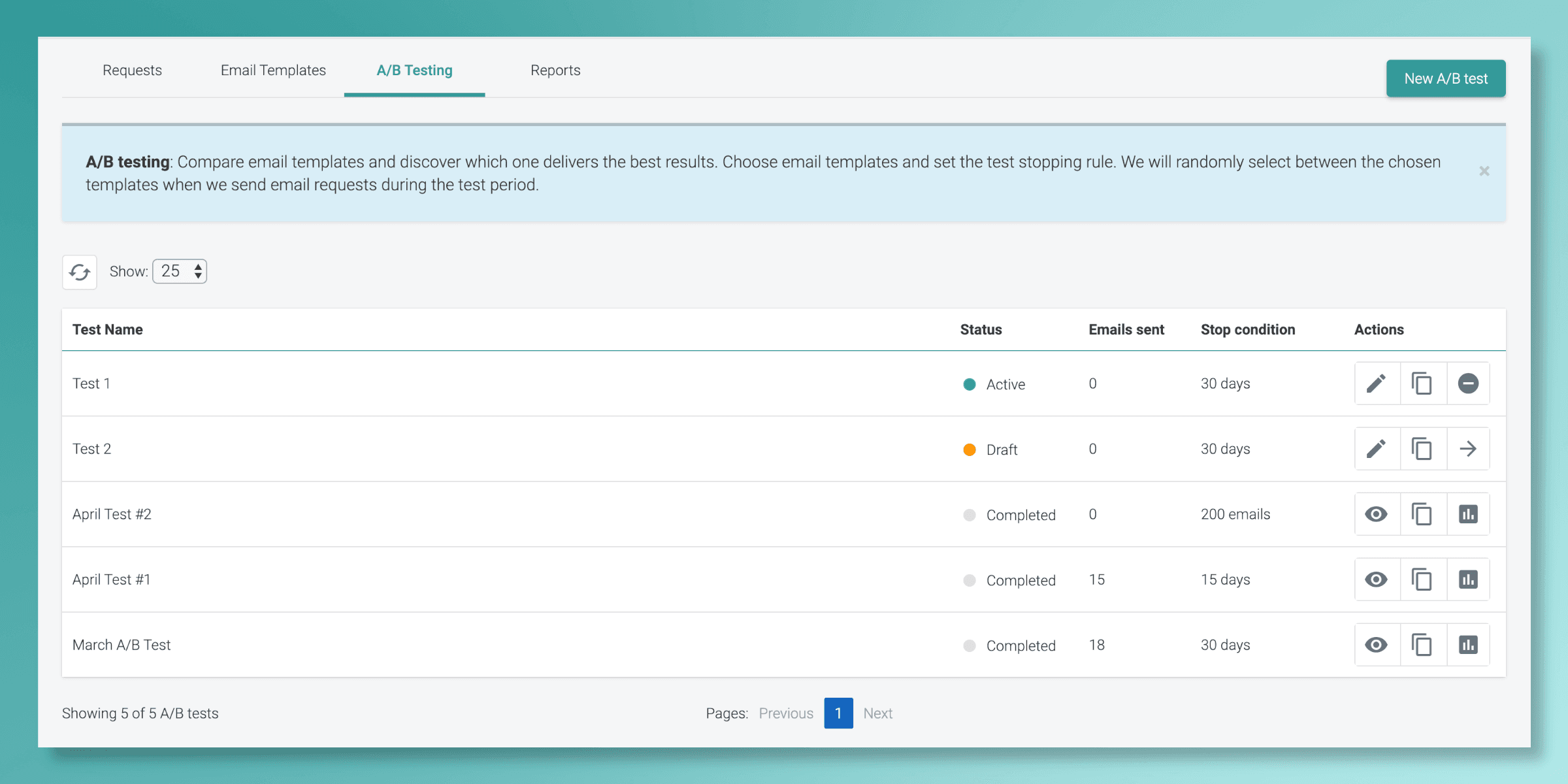 Are you looking for ways to optimize your email performance? Do you have various ideas for email design but can't decide which one to go with? Real data can help you make better decisions. Judge.me provides you with an easy-to-use A/B testing tool to help you compare different email template's versions and discover which one delivers the best results.