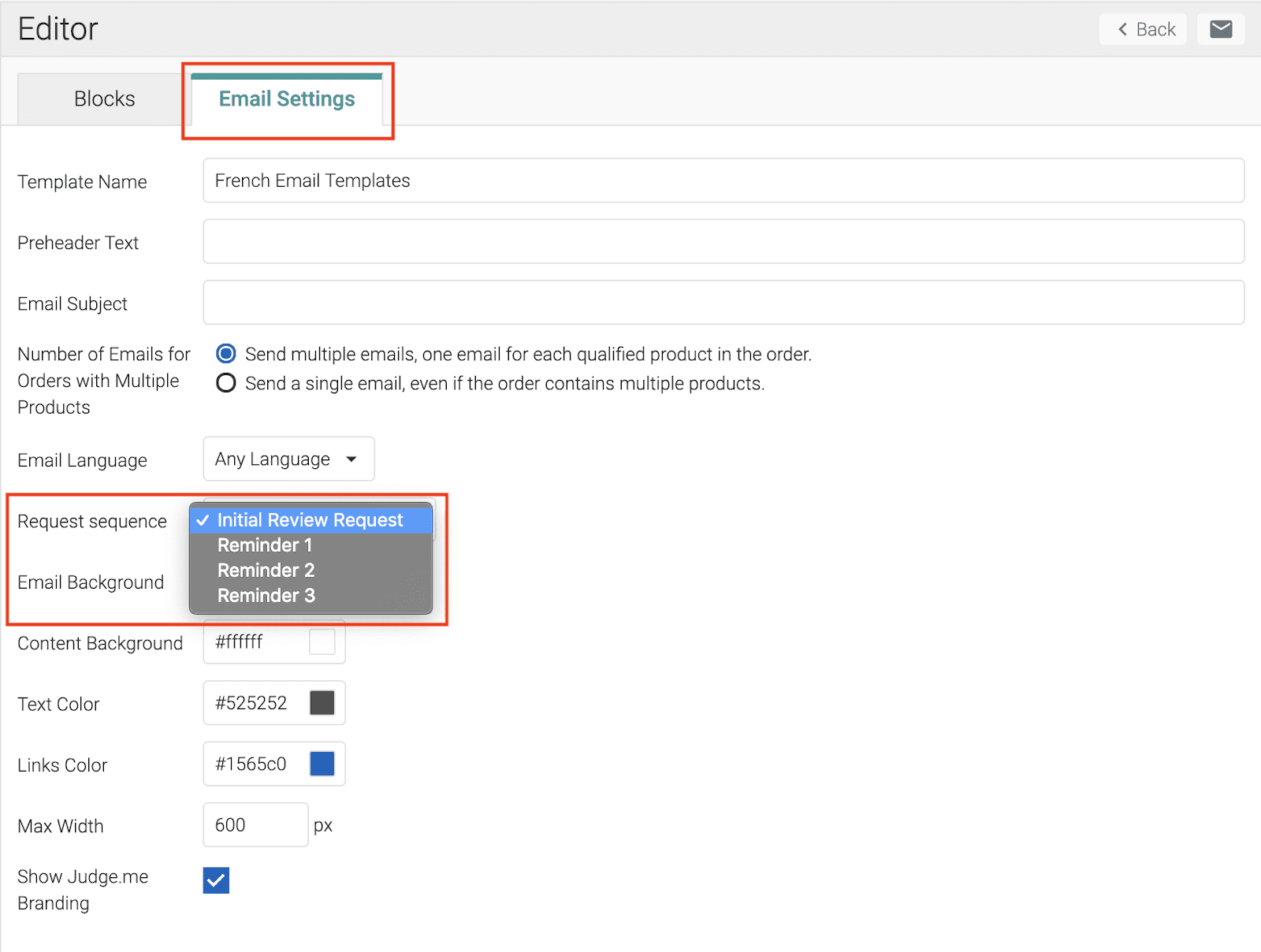 An average person receives more than 120 emails per day, so it's important that you write customized review requests and reminders that capture attention and compel people to submit a review. Now, you can set up your own customized sequence of initial review request and automatic reminder emails inside Judge.me. Simply create new emails and decide on the sending order using our email editor.