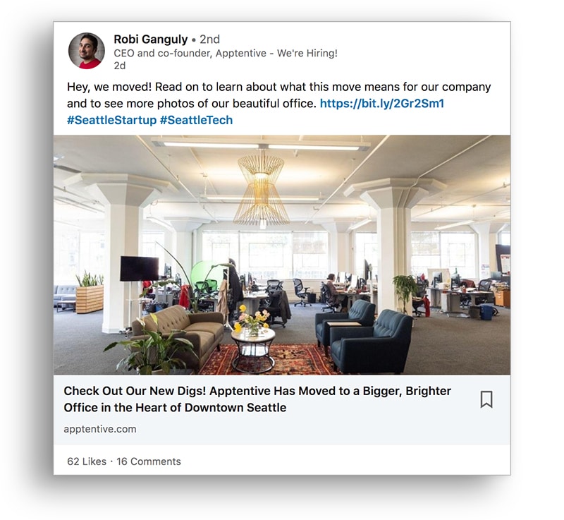 On LinkedIn, we like to cheer each other on when there’s good news. We like industry updates and big announcements. Native video and long text posts are performing exceptionally well on LinkedIn in 2019.