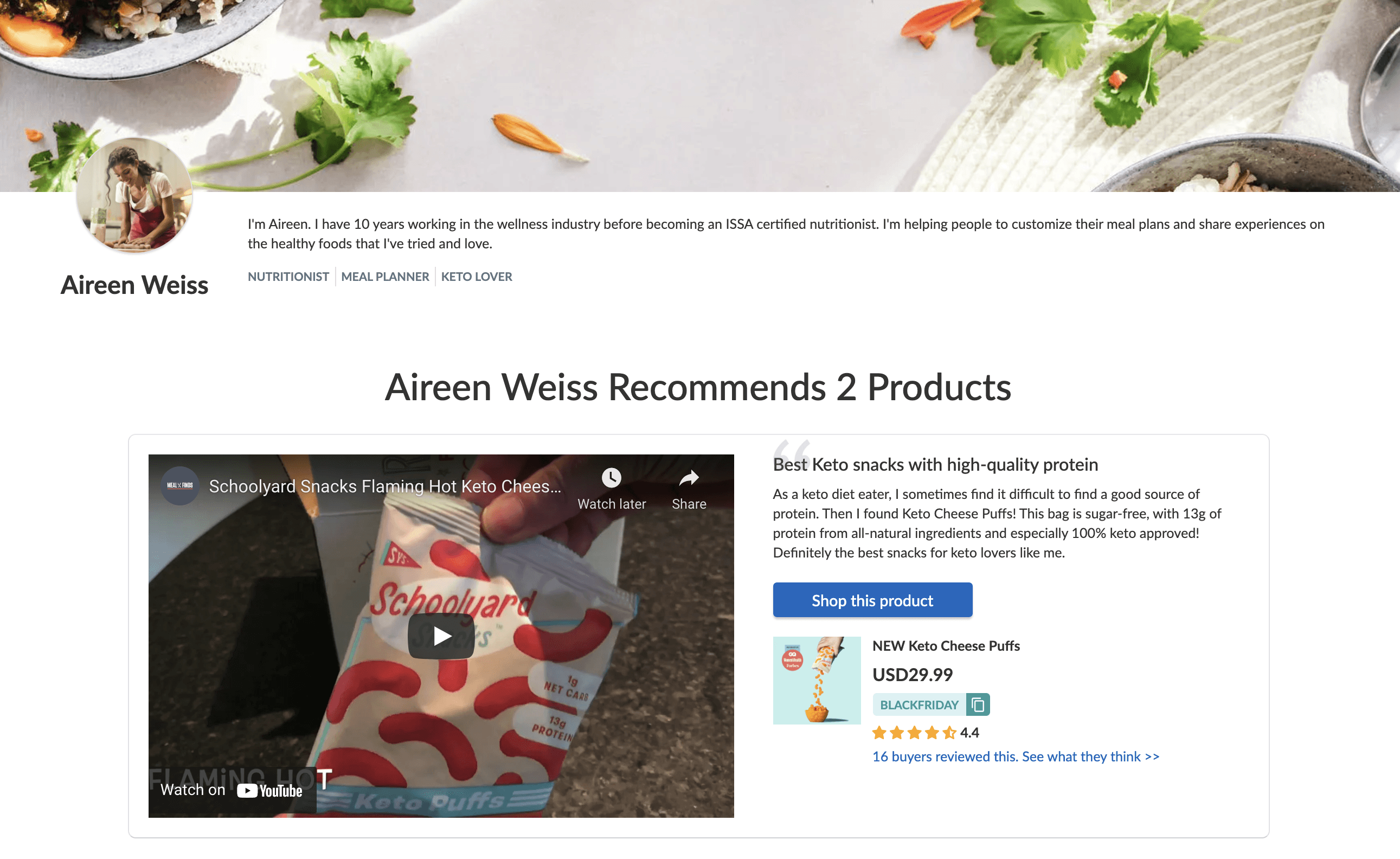 Besides showcasing your social proof, Judge.me Recommendations page also helps you attract more sales. If you have an affiliate or reward program, you can ask influencers to add your affiliate links or coupon codes to their recommendations on Judge.me. After reading the product recommendations, potential customers can click on the call-to-actions (CTA) button to go to your store and make a purchase immediately. Such shoppable UGC is increasingly used by brands as a way to simplify and smoothen the buying journey, ensuring that customers are only one or two clicks away from getting their desired products.