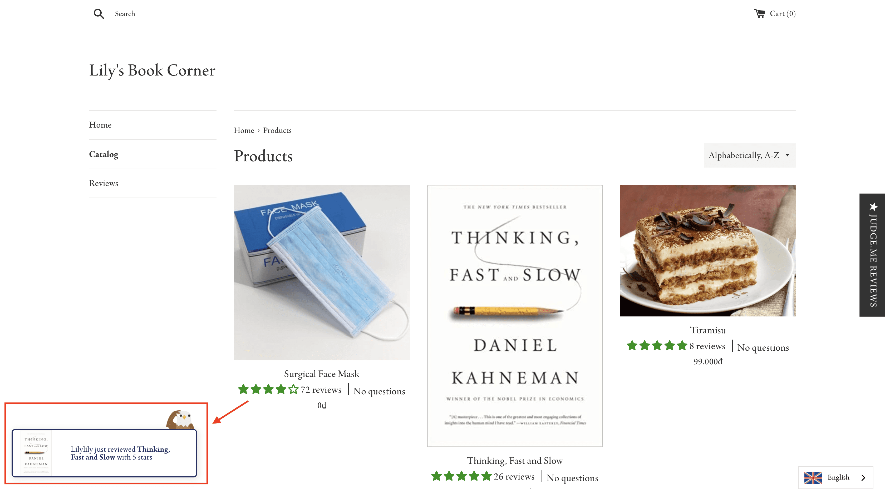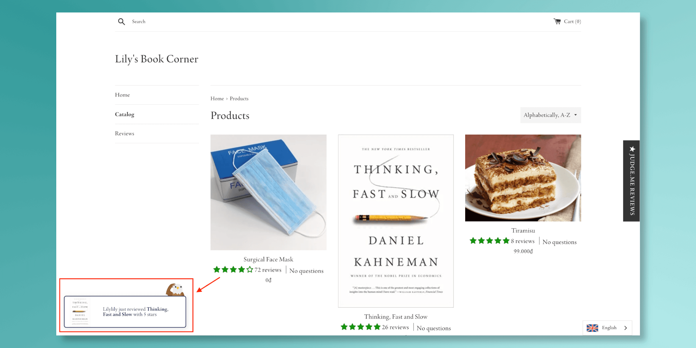 Have your latest reviews pop up on the storefront to showcase your social proof.