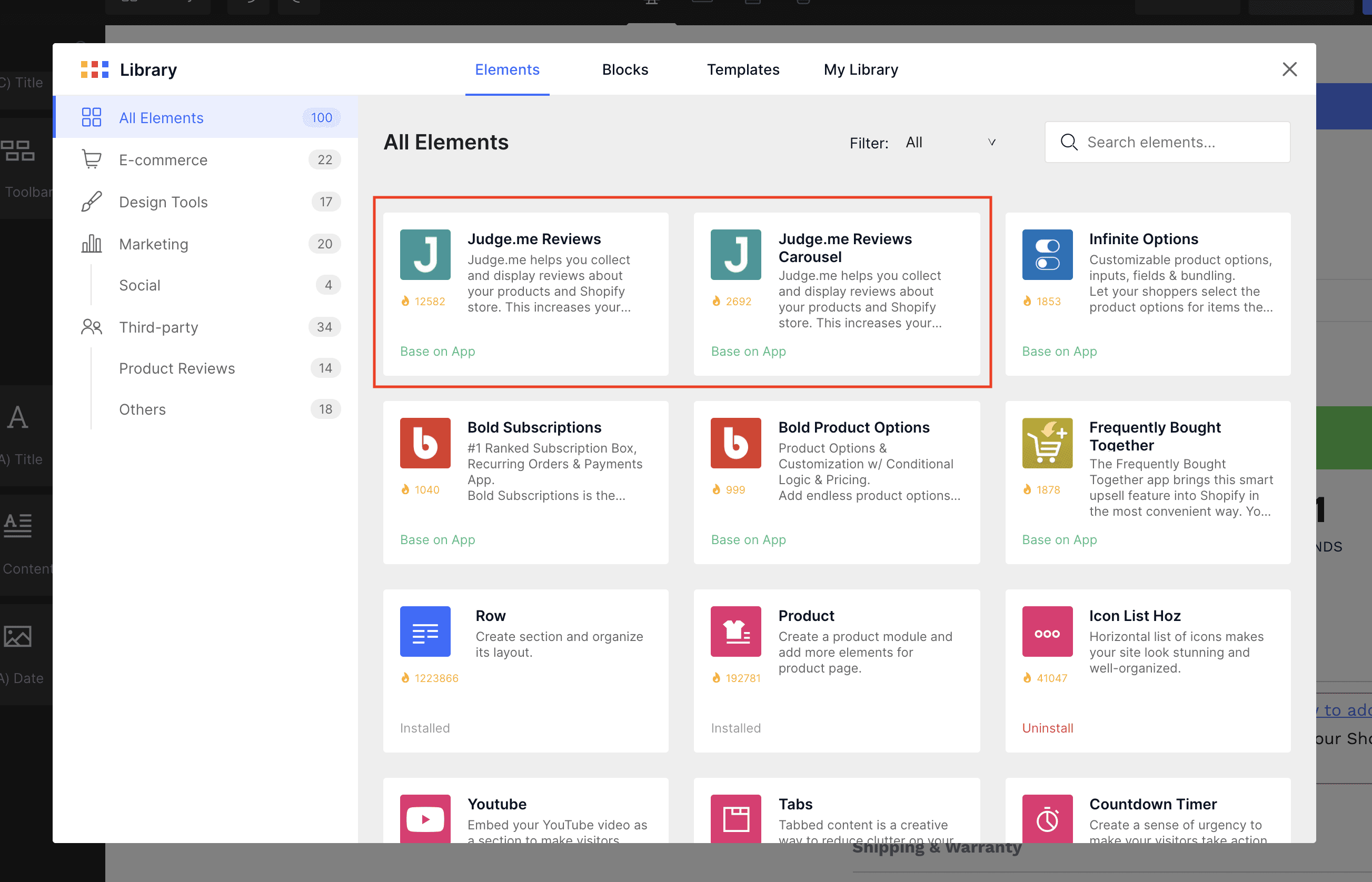 After installing GemPages, you can enable the Judge.me widgets by adding them from the Library.