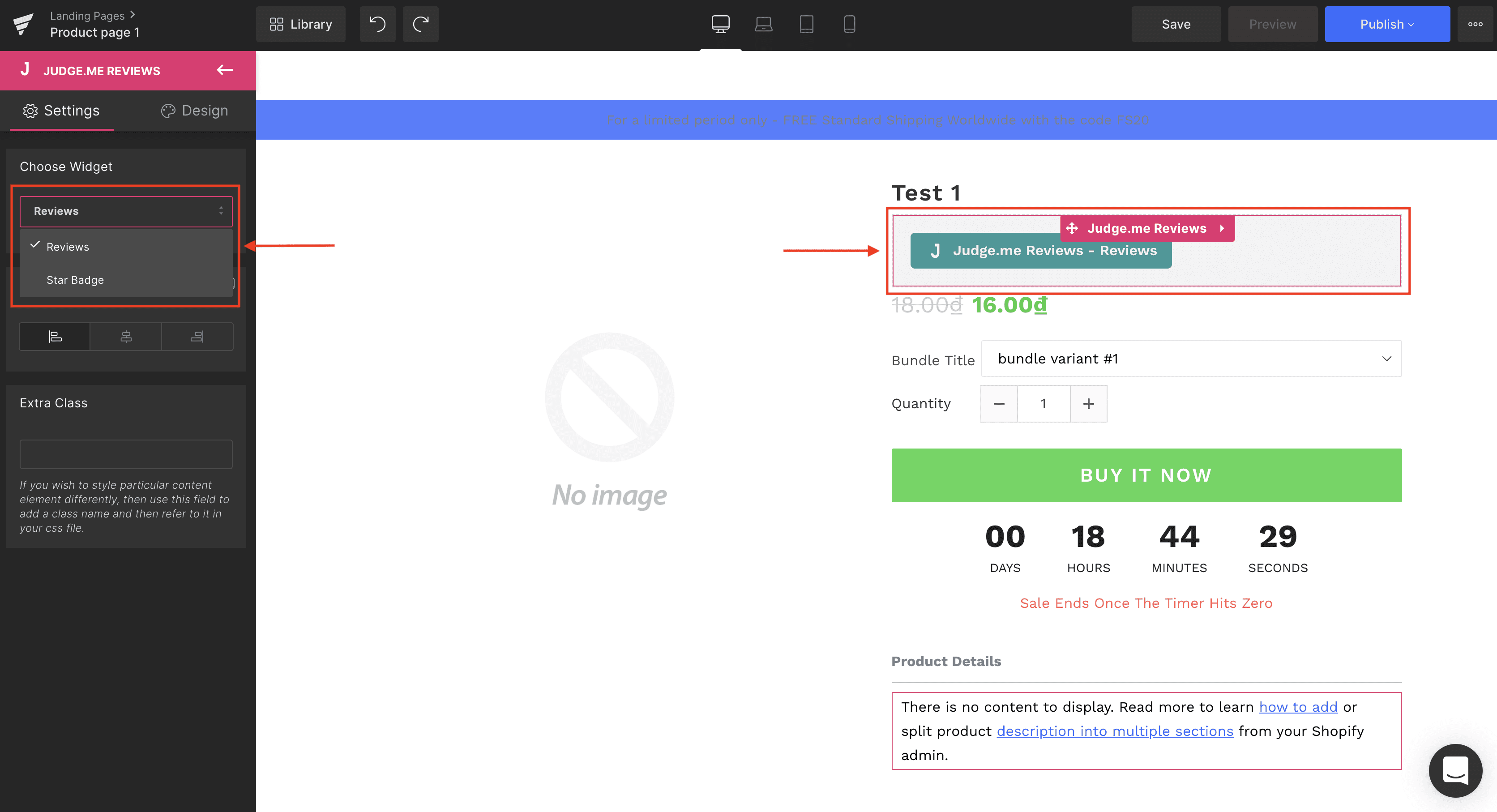 To add the Judge.me widgets, simply drag and drop them into the position you want in the GemPages editor.