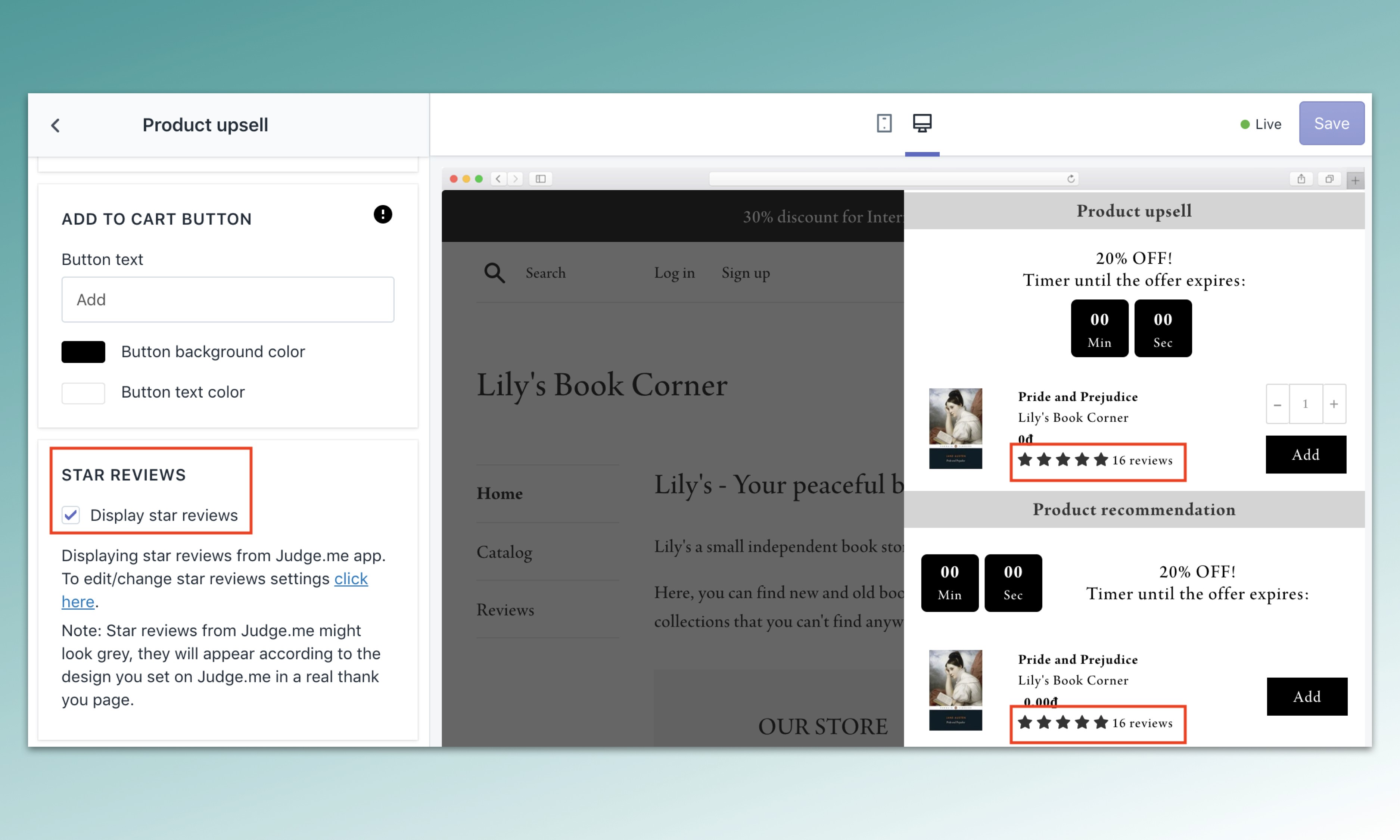 Add the Preview Badge (stars) to the cart items, upselling products, recommended products and discount products.