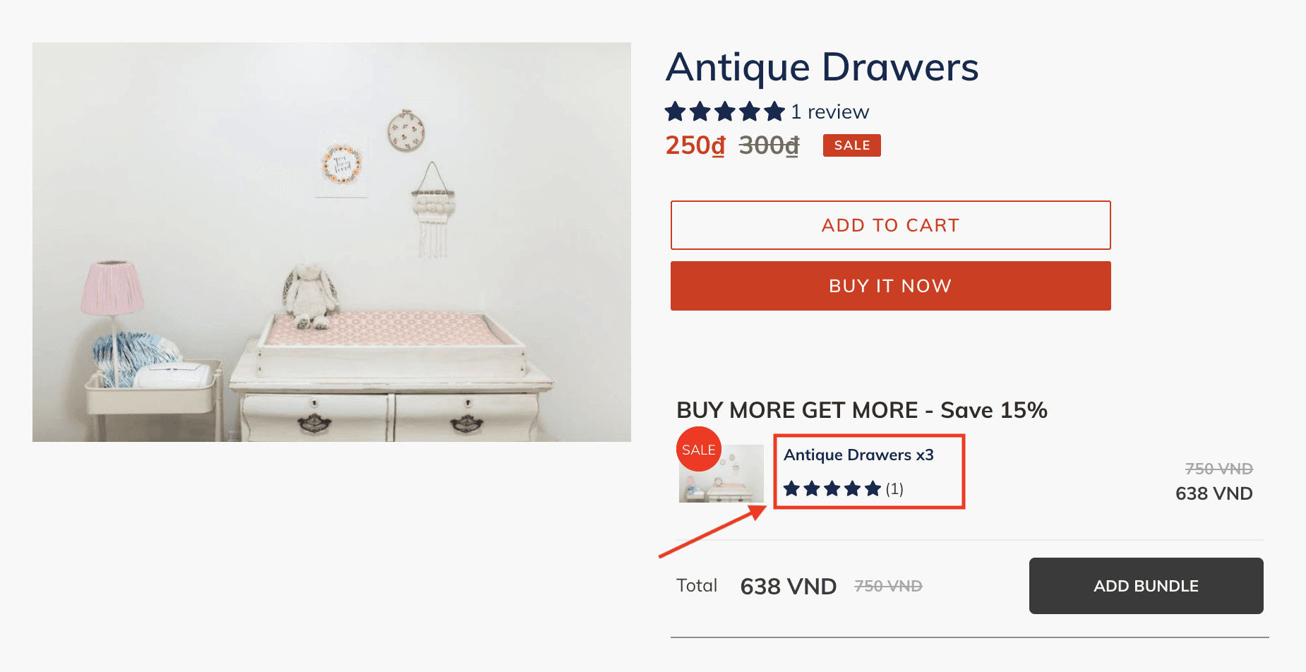 Here is how the product bundles with review stars look like in your store: