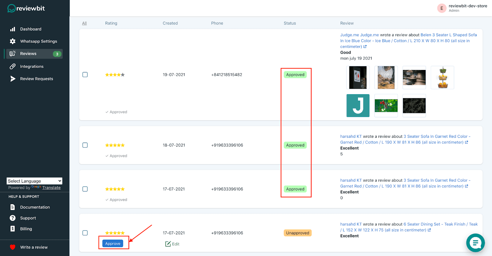 After you approve the reviews in Reviewbit, these reviews will be sent automatically to Judge.me.