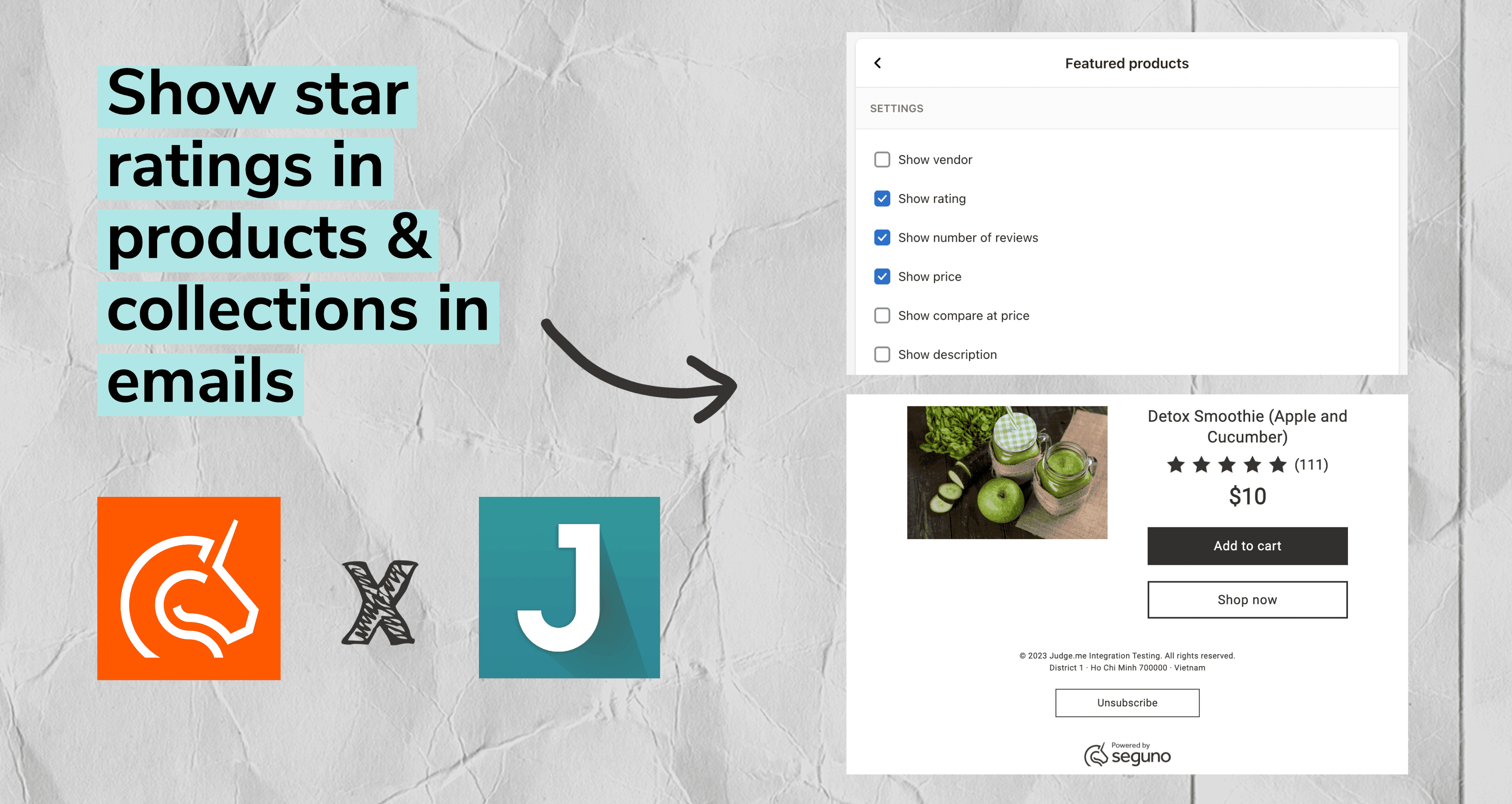 Social proof is an incredibly powerful tool for email marketing. By adding social proof such as star ratings to your email campaigns, you will be able to increase your sales and gain a competitive edge. Our new integration with Seguno provides you with an easy way to leverage that power.