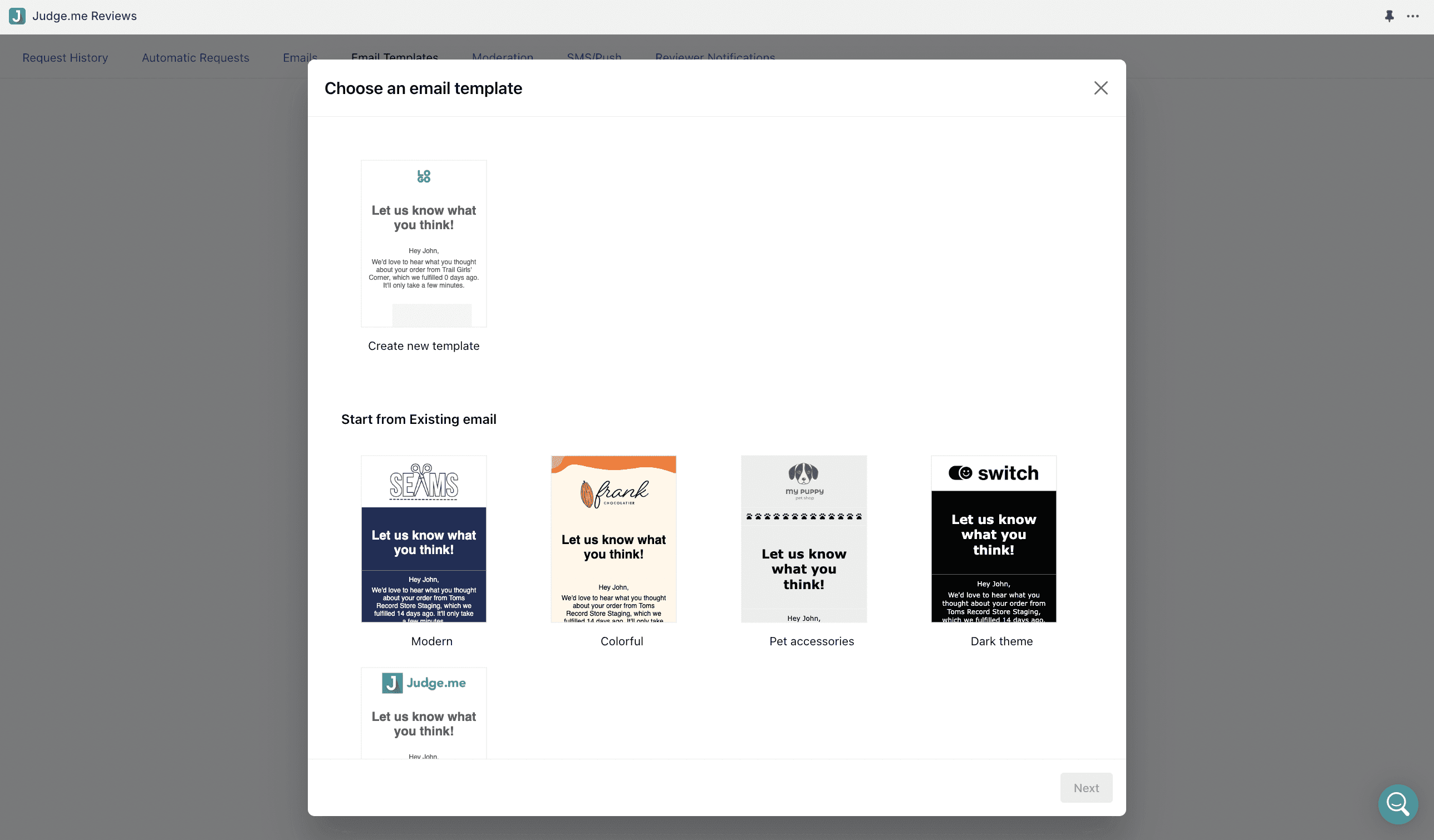 You can choose a template in Collect Reviews > Email templates. Then click on the Create template button.
