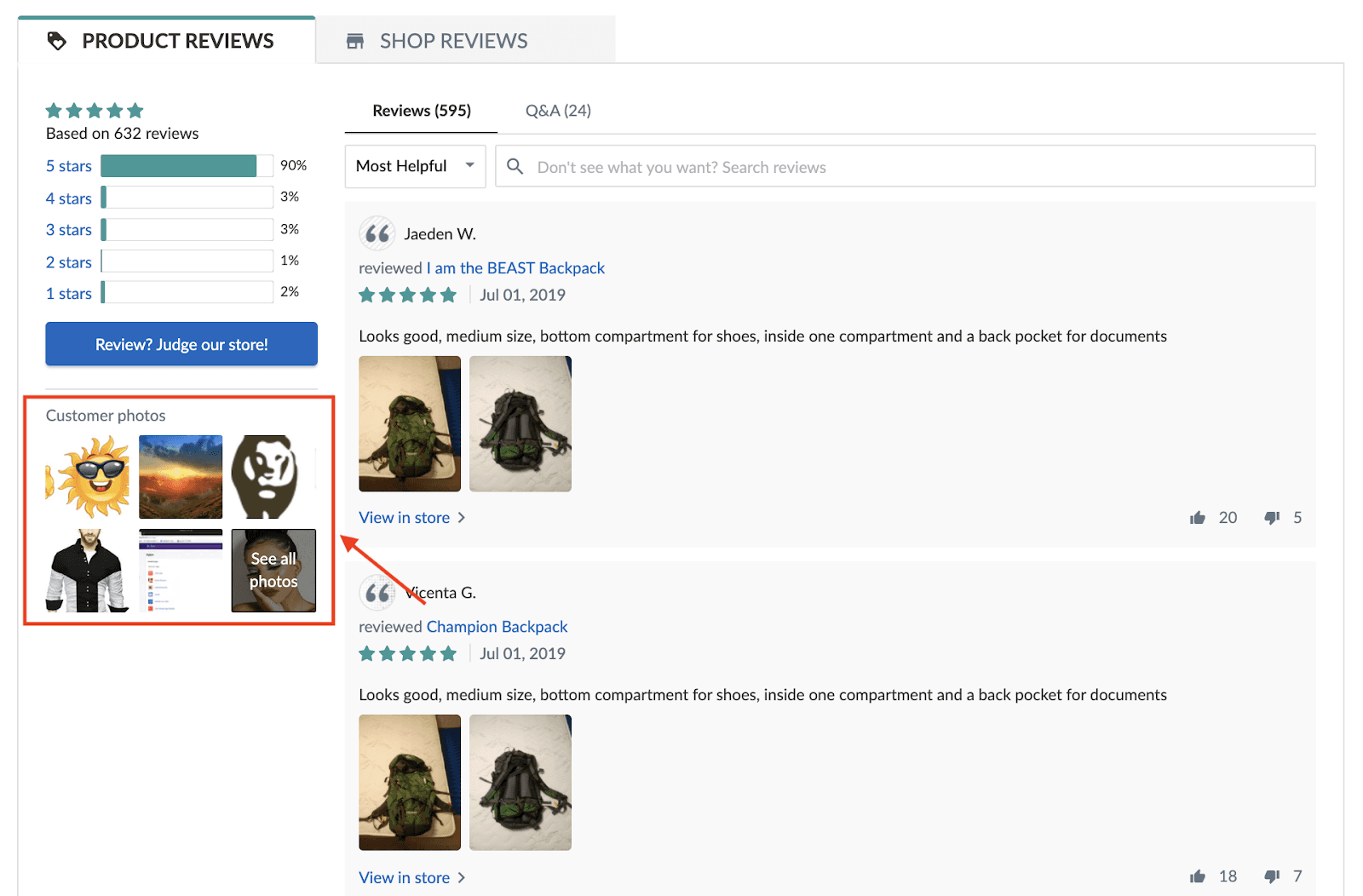 One shortcut is to check the “Customer photos” section on the bottom left side of your store page.