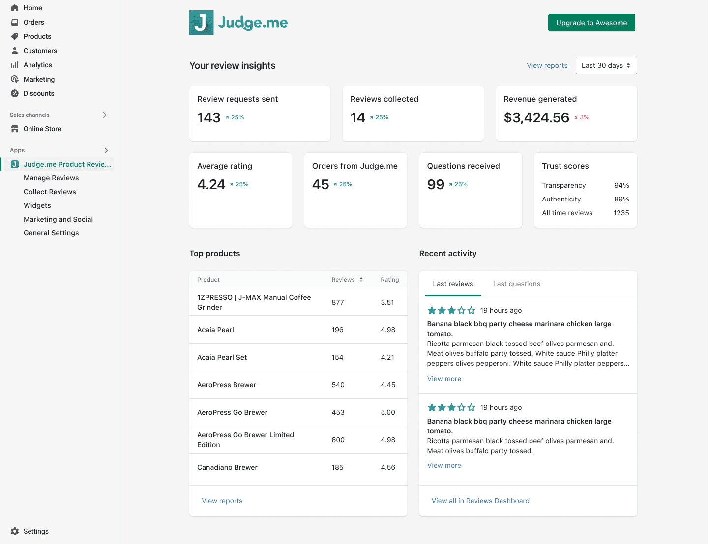 Revenue and orders generated from Judge.me reviews. (Find out how we calculate that here.)