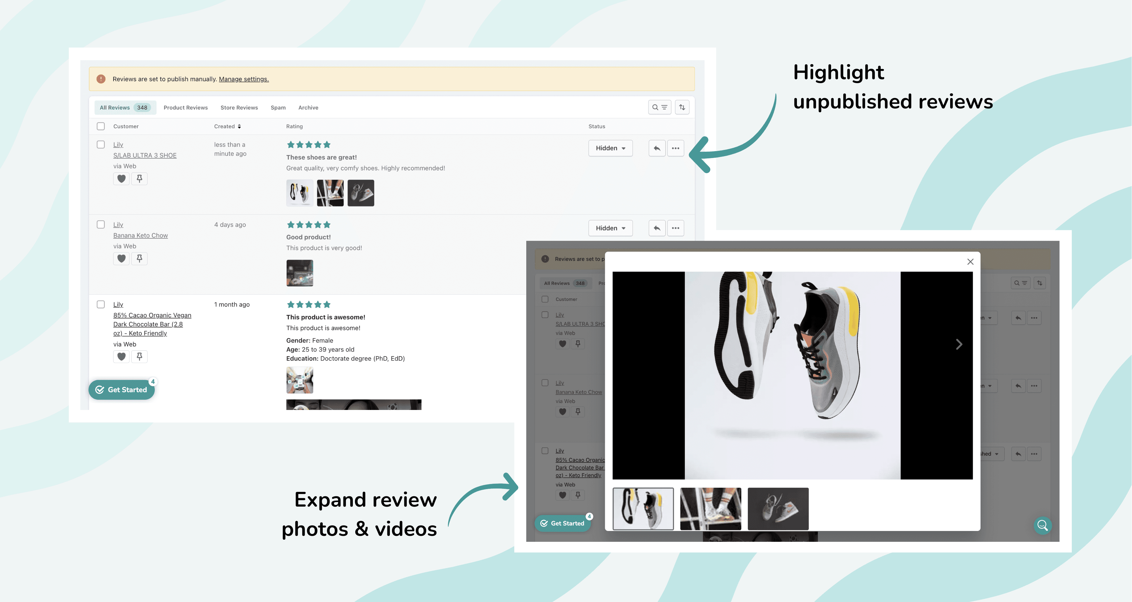 Gallery navigation: If a review includes multiple photos, you can navigate between them in a gallery style. This feature makes it super easy to browse through all images without leaving the review page, providing a comprehensive view of customer feedback without added effort.