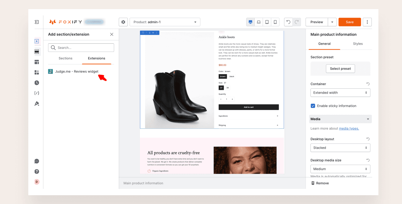 See how effortless it is to integrate Judge.me review widgets using the Foxify app, especially for singular pages like your homepage or product pages?