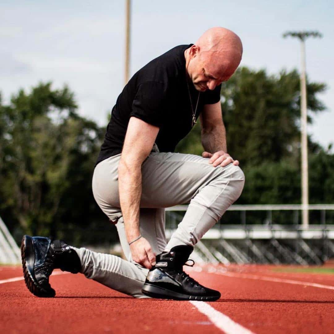 “I didn’t change the shoes at all,” says Darin. “They were exactly what bodybuilders needed. Flat soles, high tops, interesting designs, interchangeable components, lightweight, sturdy, versatile and they didn't look like gym shoes because they weren't gym shoes. They were streetwear shoes and hip hop shoes, and they just happened to be perfect. I inadvertently had a performance shoe that if you wore them out of the gym, it didn't look like you just came from the gym. You could throw on some selvage denim and a shirt and pair my anaconda high tops. Go out to dinner, go to the club. Nobody would know you just left the gym and everybody would be staring at your kicks because they were so unique looking.”