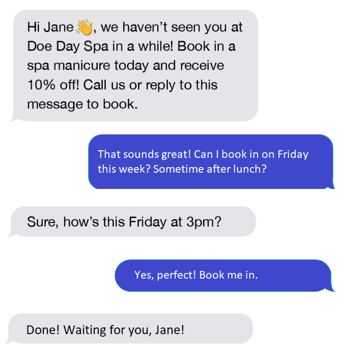 It stands to reason that you don't need a call to action when sending order confirmations or appointment reminders. Yet, do your best to include it in every text message aimed at engaging customers:
