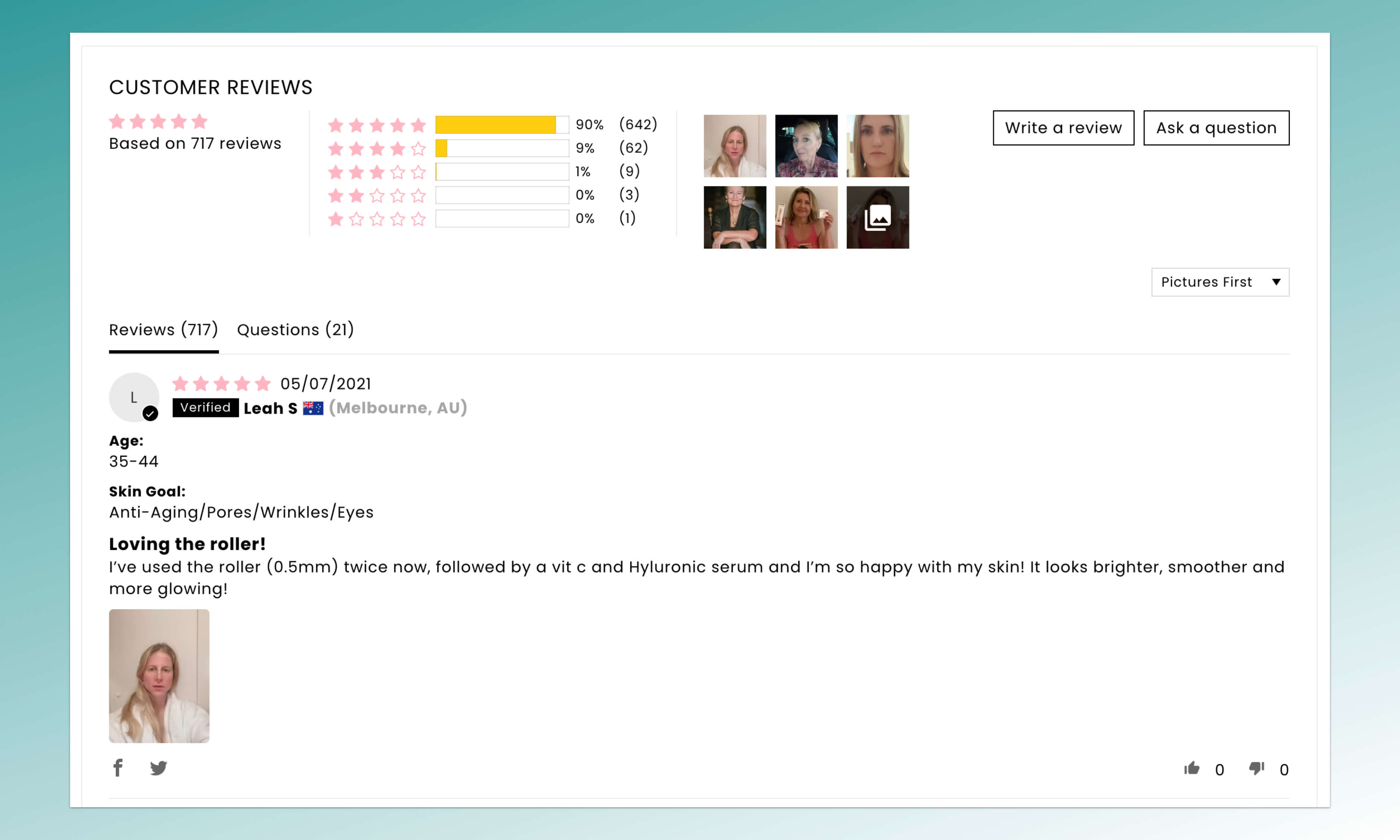 Another feature we love is getting user photos or videos that can be attached to the review. We've set things up so that our customers can add a photo as they write their reviews. In addition, what we find to be the most successful is having a follow-up email to remind people to add a photo to their review.