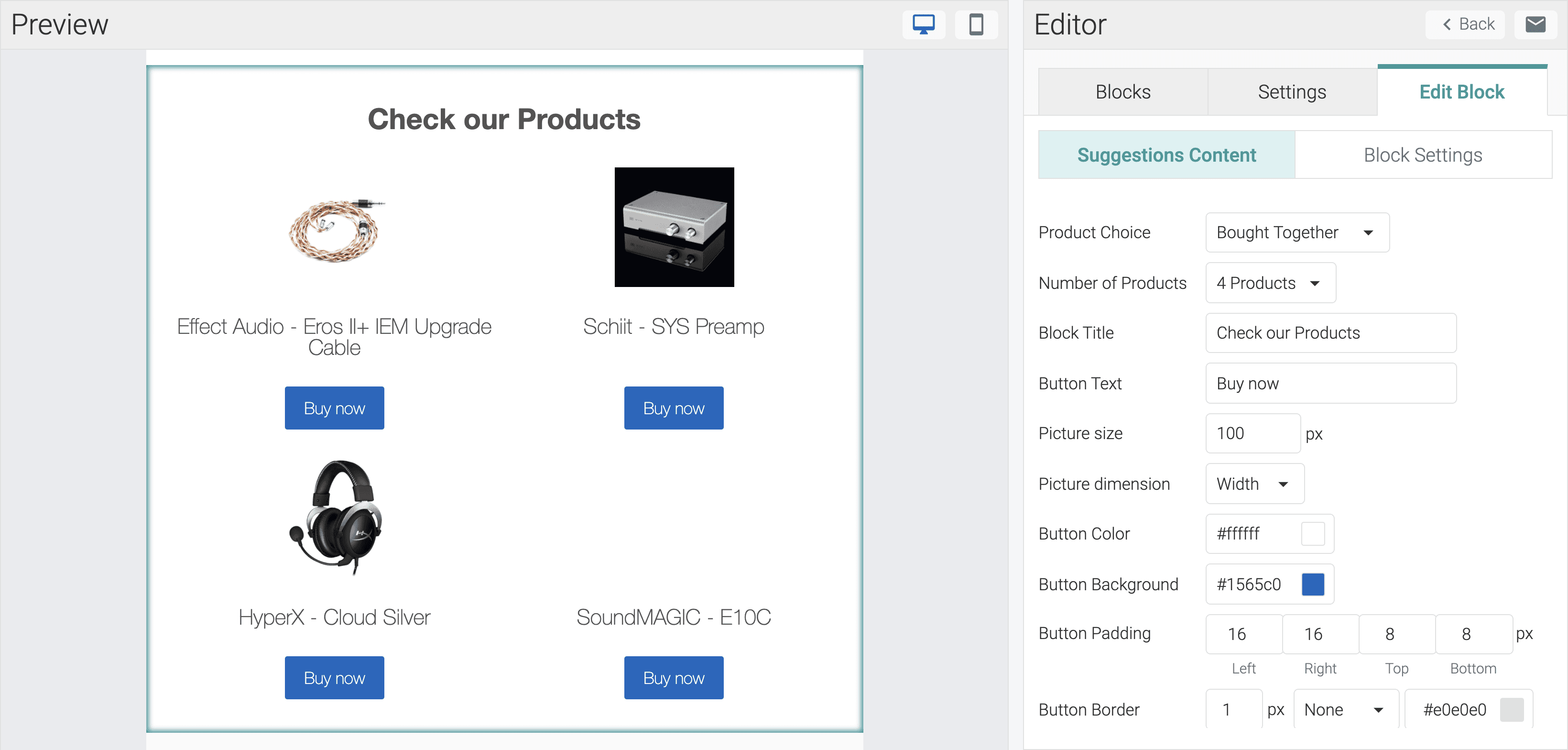 Another interesting block in the new Email Templates is the Suggestions block.