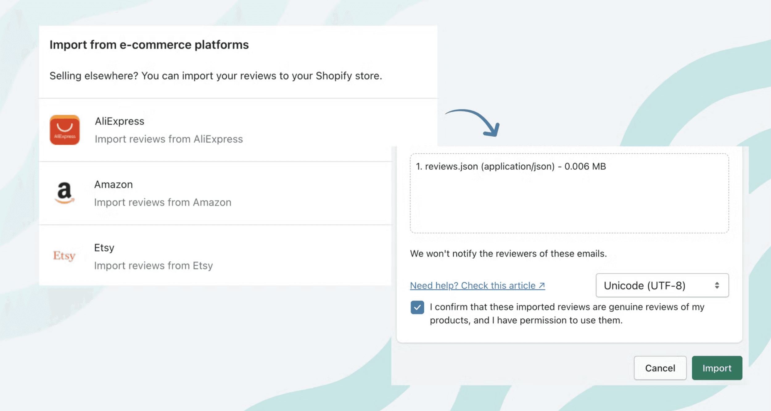 Building social proof from scratch takes time and effort, especially when you’re selling on multiple e-commerce platforms. You'll want to ensure that great reviews on an e-commerce platform can easily be transferred to other ones to help you drive more sales faster.