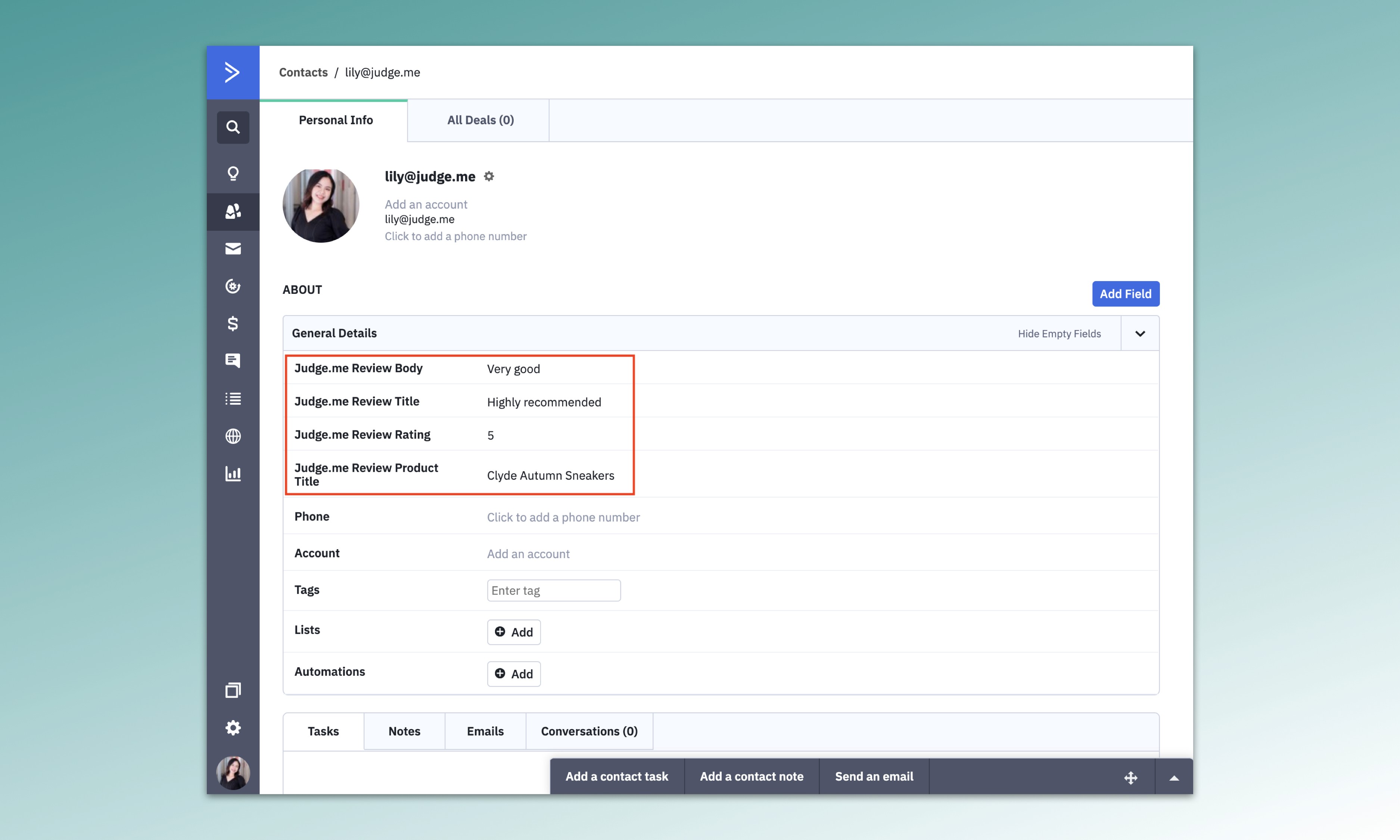 With ActiveCampaign <> Judge.me integration, whenever your customers submit a review on Judge.me, you'll receive the following data as custom fields in your ActiveCampaign dashboard: