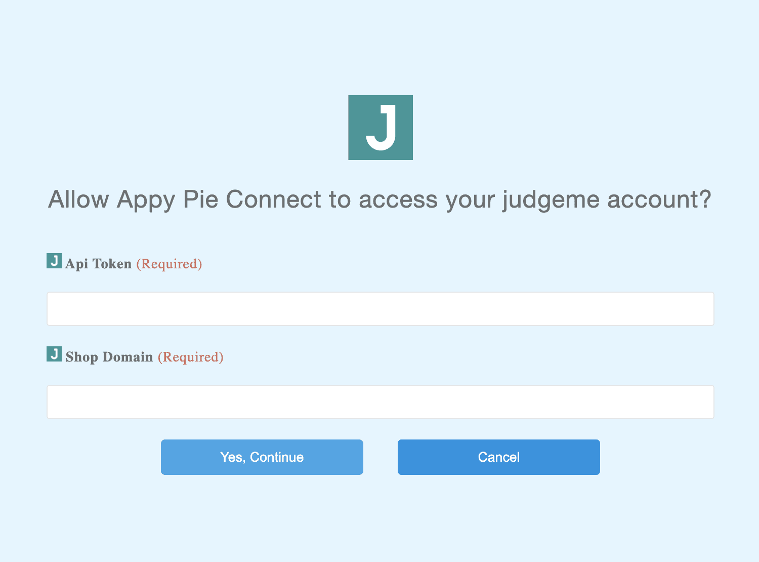 After installing Judge.me and signing up for an Appy Pie account, go ahead to create your first Connect in Appy Pie. When you choose Judge.me as the Trigger, you will be instructed to connect your Judge.me account by providing your shop domain and Judge.me private token. You can find these infos in Judge.me settings > Integrations > Developers > Judge.me API, then paste them in the fields provided by Appy Pie.