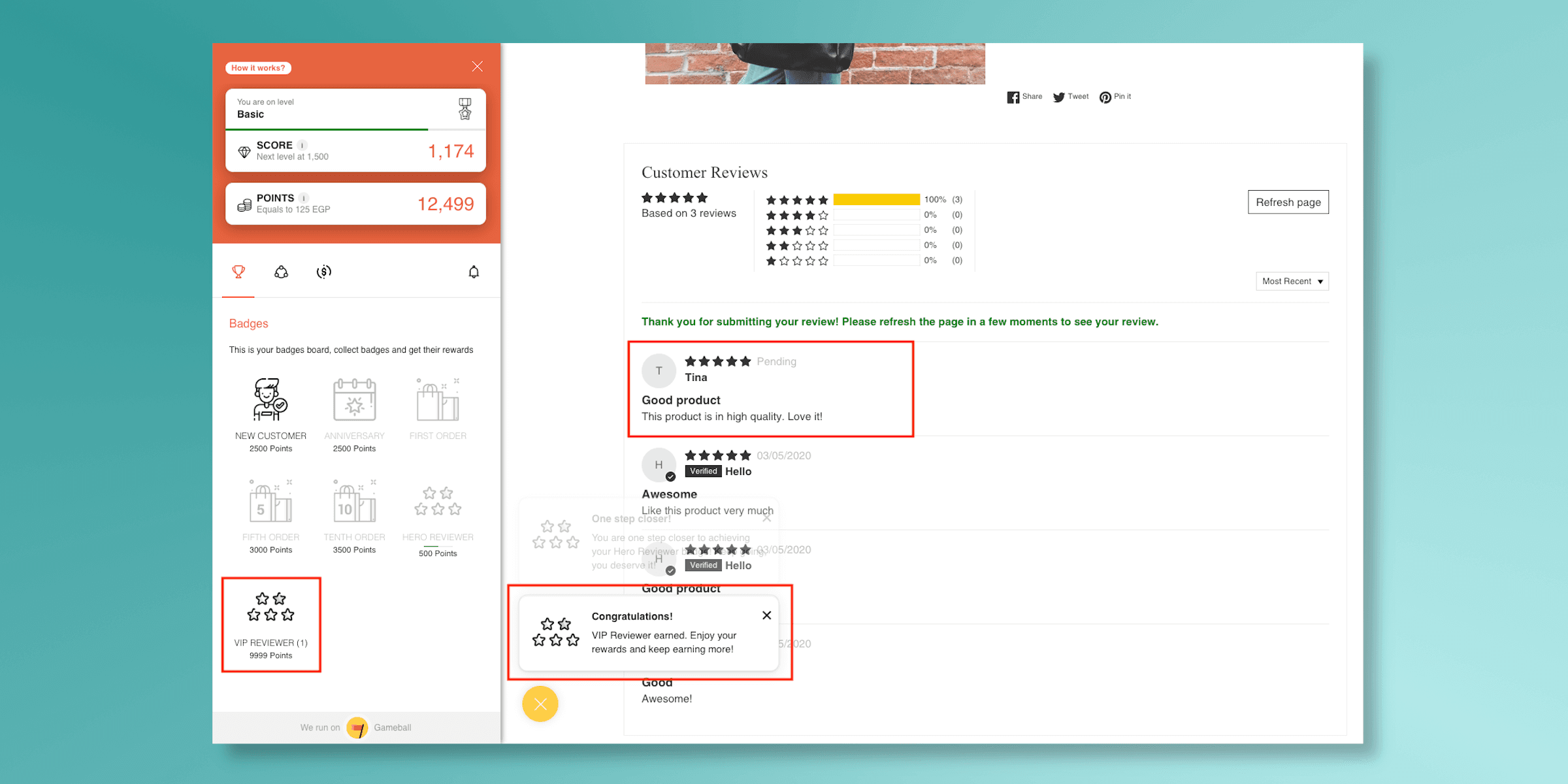 Judge.me has been integrated with Gameball - Gamified Badges and Rewards app for Shopify merchants. Check it out!