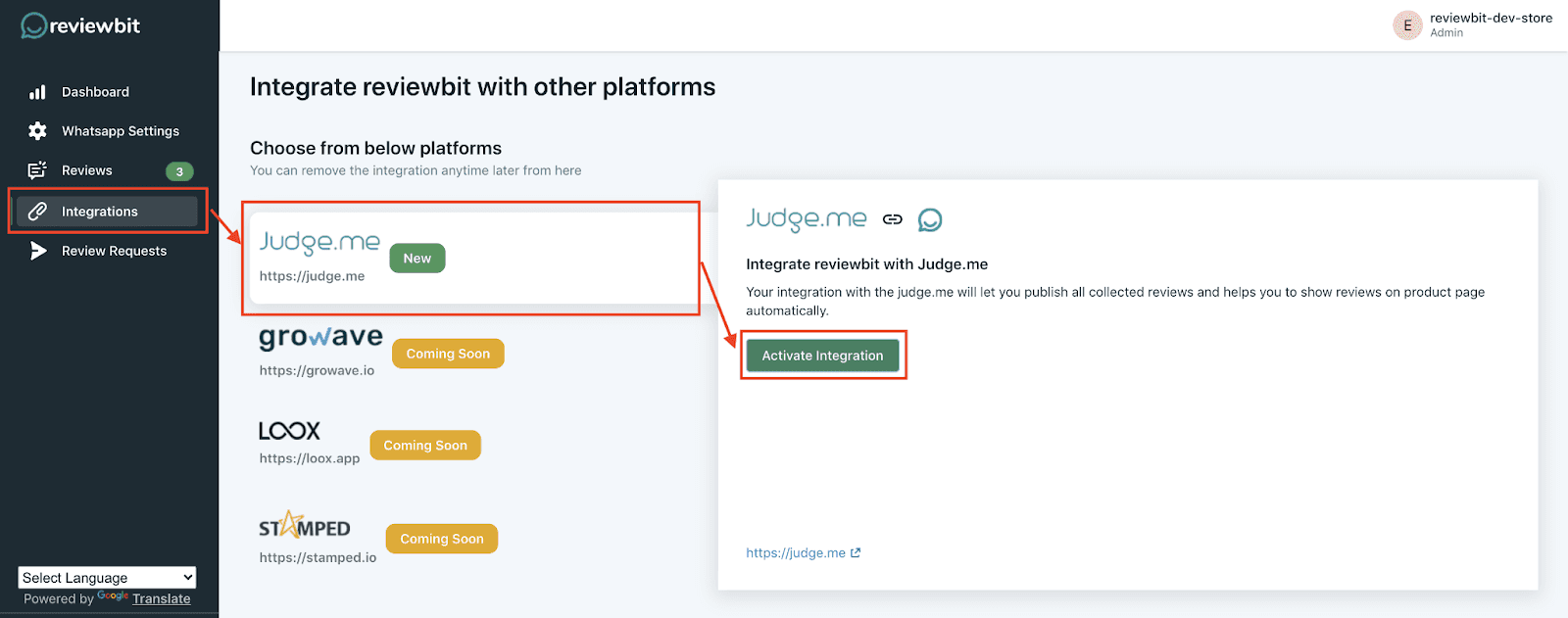 After installing Judge.me and Reviewbit, follow these instructions to enable the integration.