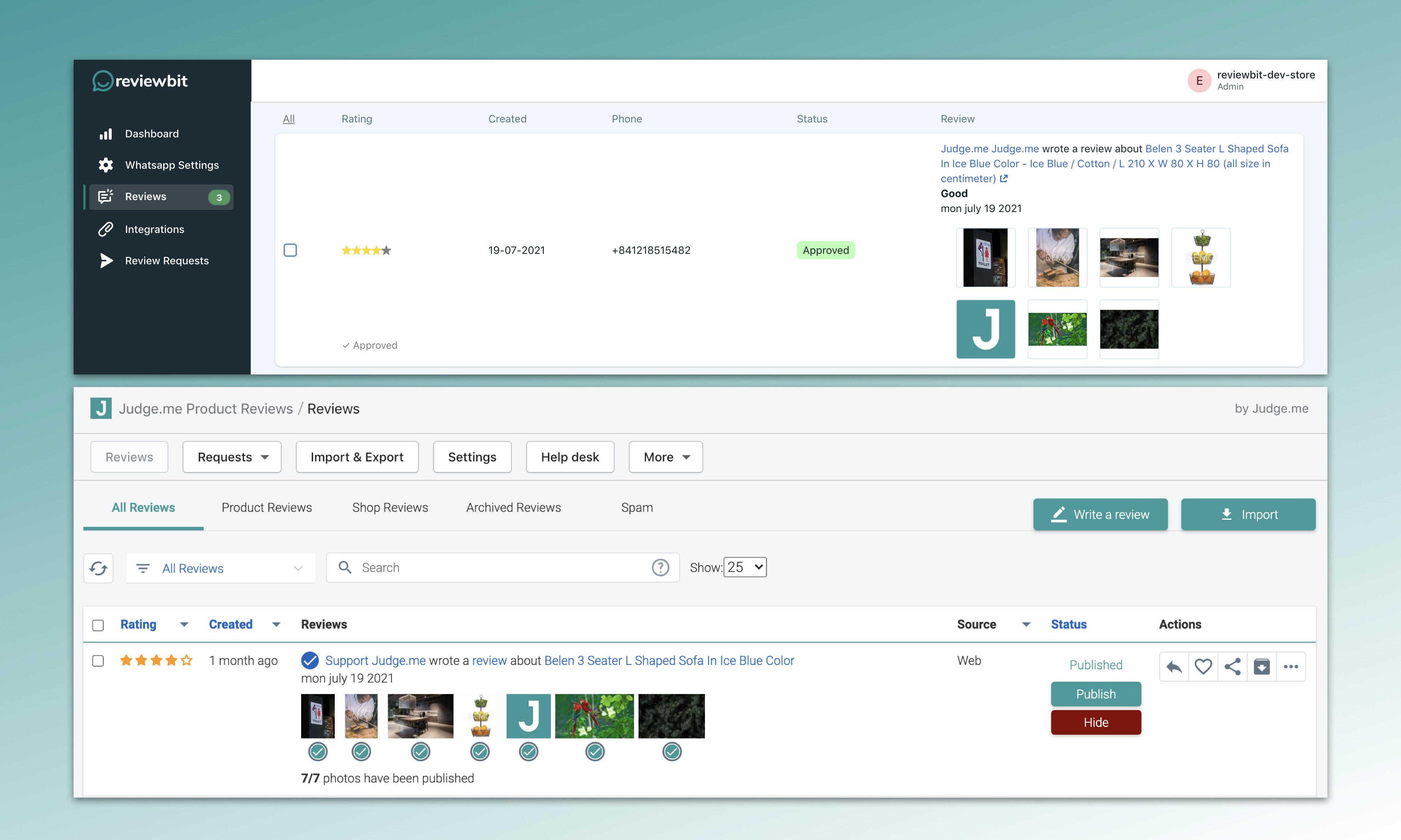 After you approve the reviews in Reviewbit, these reviews will be sent automatically to Judge.me.