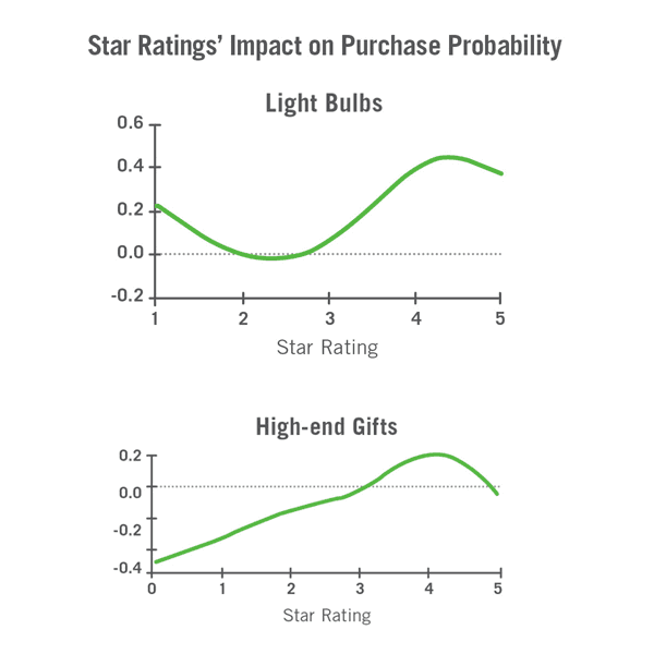 The relationship between star ratings and purchase likelihood is interesting. Research from Spiegel shows that the purchase likelihood peaks at 4 to 4.7-star ratings, then begins to decrease as the star ratings get closer to 5 since most customers feel that a 5-star rating is too good to be true.