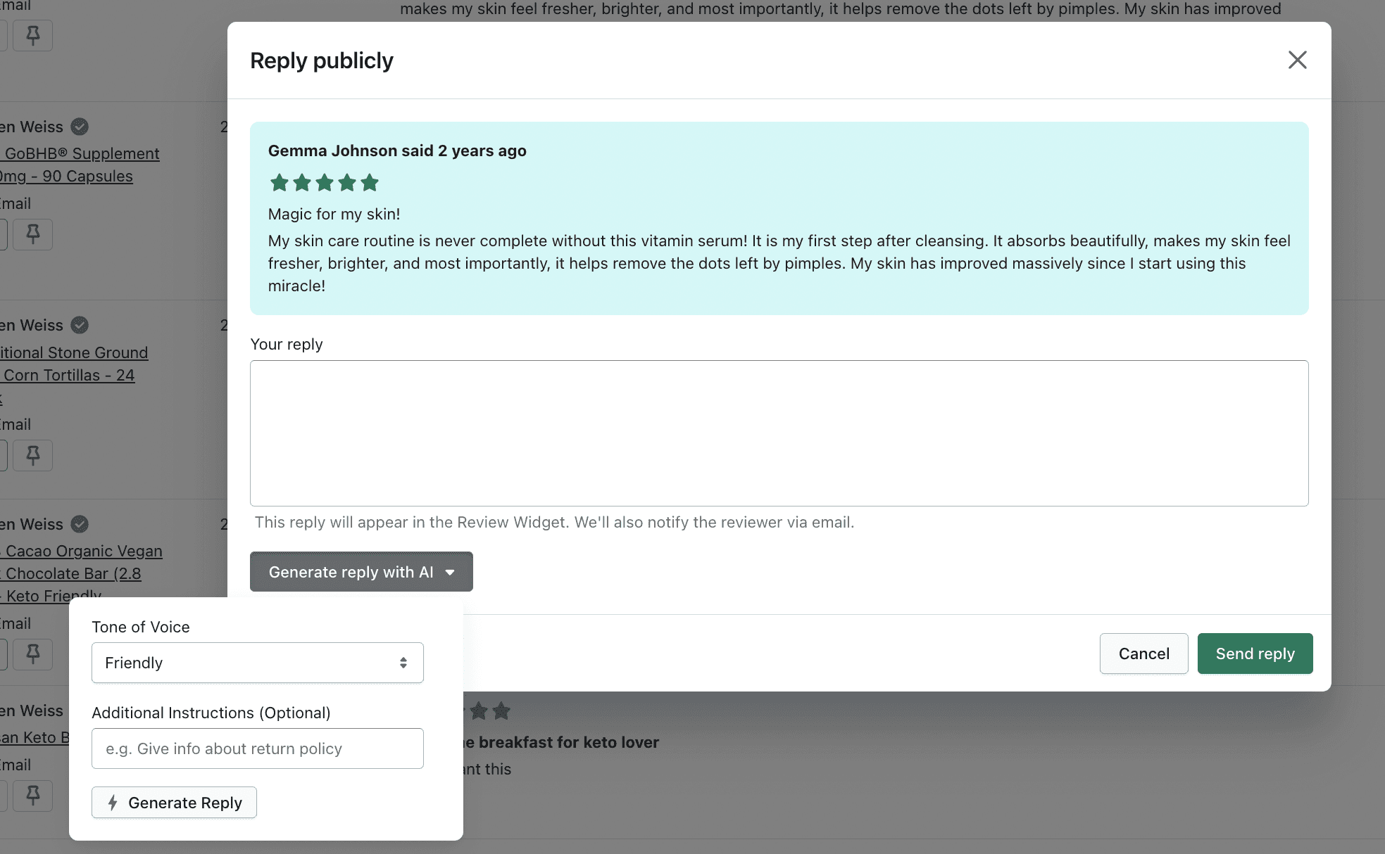 Even better, you can create responses with different tone of voice presets so that the replies you generate sound authentic and reflect your store’s identity.