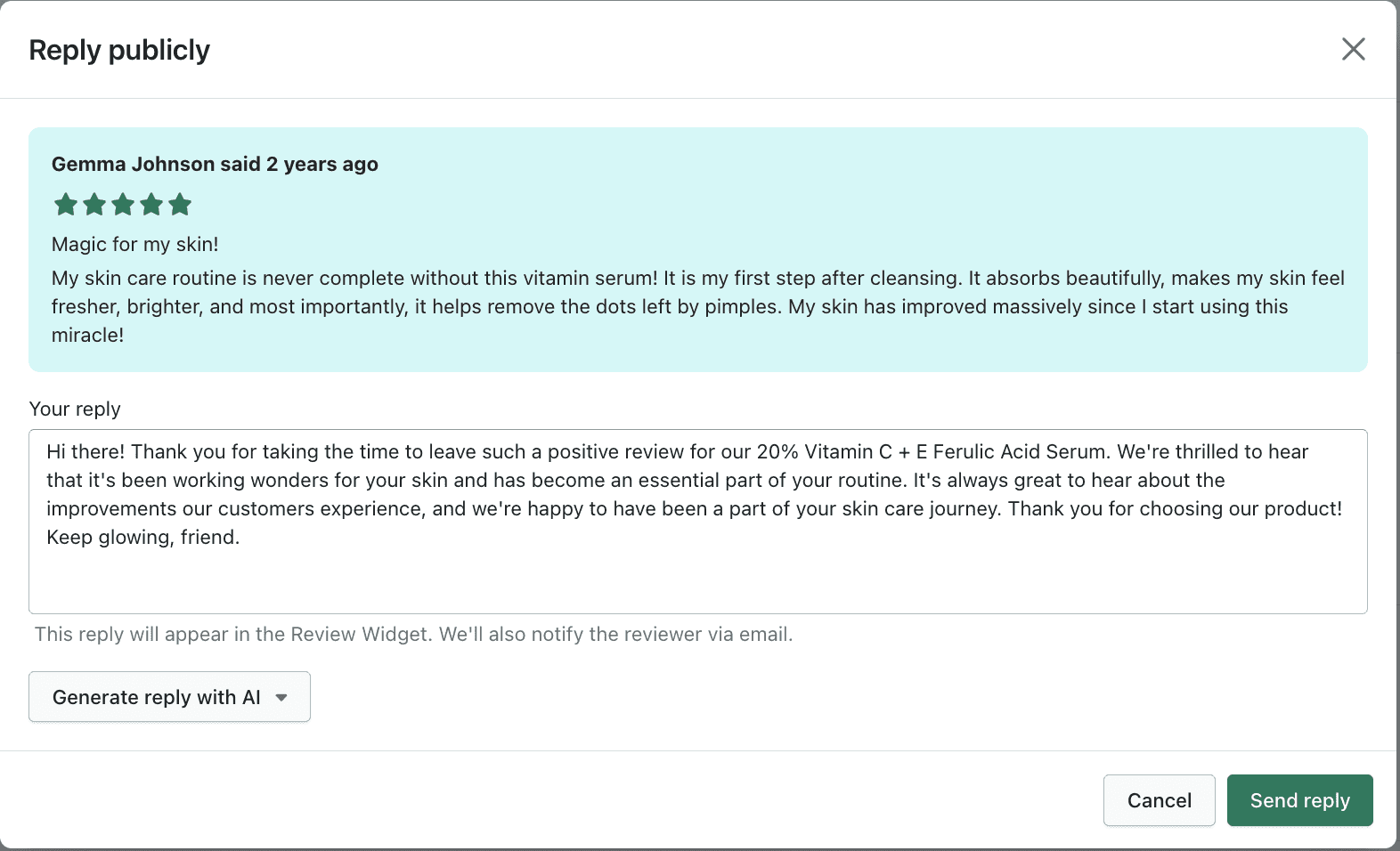 With our new AI tool, users on the Awesome plan can generate near-instant replies when responding to reviews.