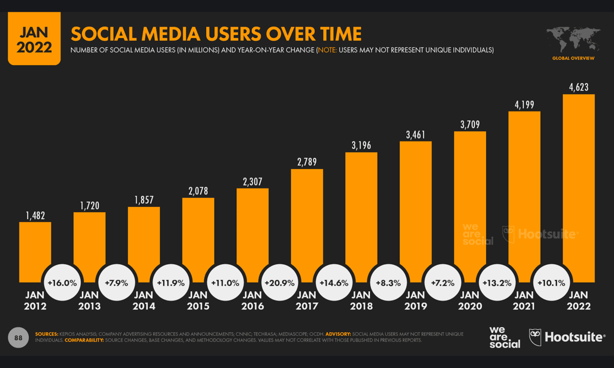 The popularity of social media doesn't need an explanation. Over 4.62 Billion people are using social media around the world, which is a significant portion of the world's population.