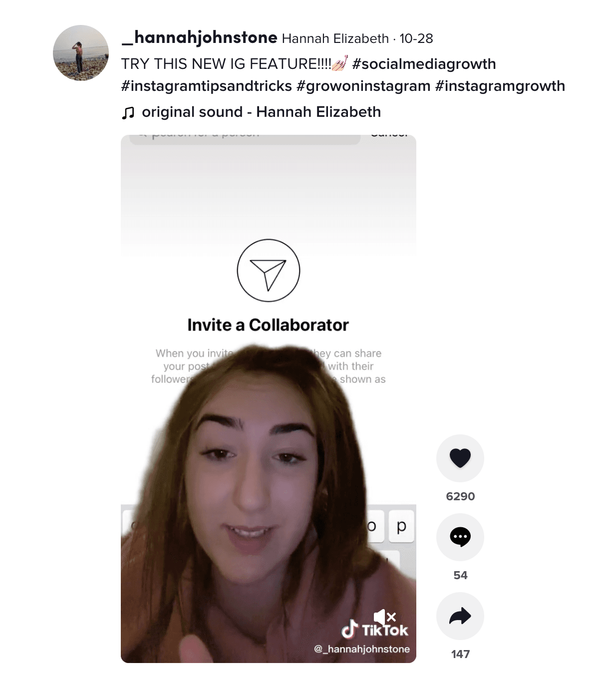 Hannah Elizabeth, a micro-influencer with 26k fans on Instagram, is an example. While she uses Instagram to post sponsored content for brands, her Tiktok is solely for random tips (how to take good Instagram photos, how to get more followers, etc.) or short videos about her life.