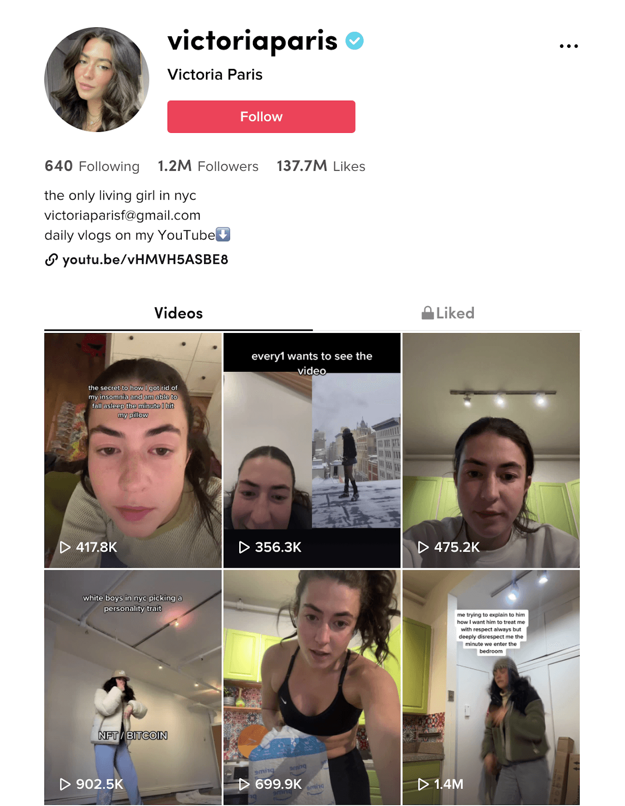 With a consistent process on Tiktok: creating short videos showing different angles of her life and replying to her followers all the time, Victoria has built an extremely engaged community of followers.