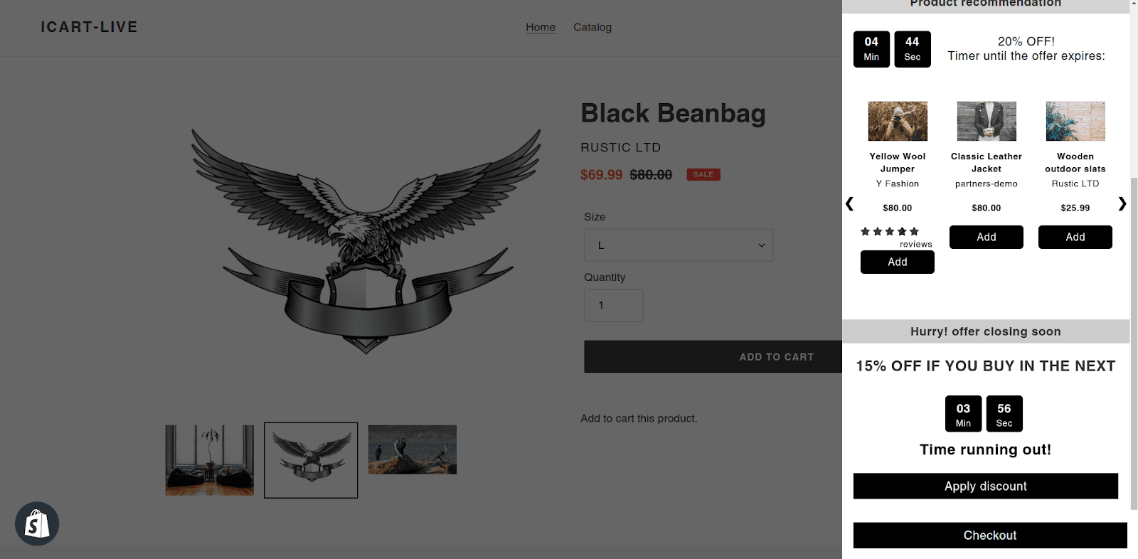 Customers find it more interesting when they see such upsells. If you are adding any offer to your cart page or cart drawer, don’t miss attaching a simple ticking countdown timer.