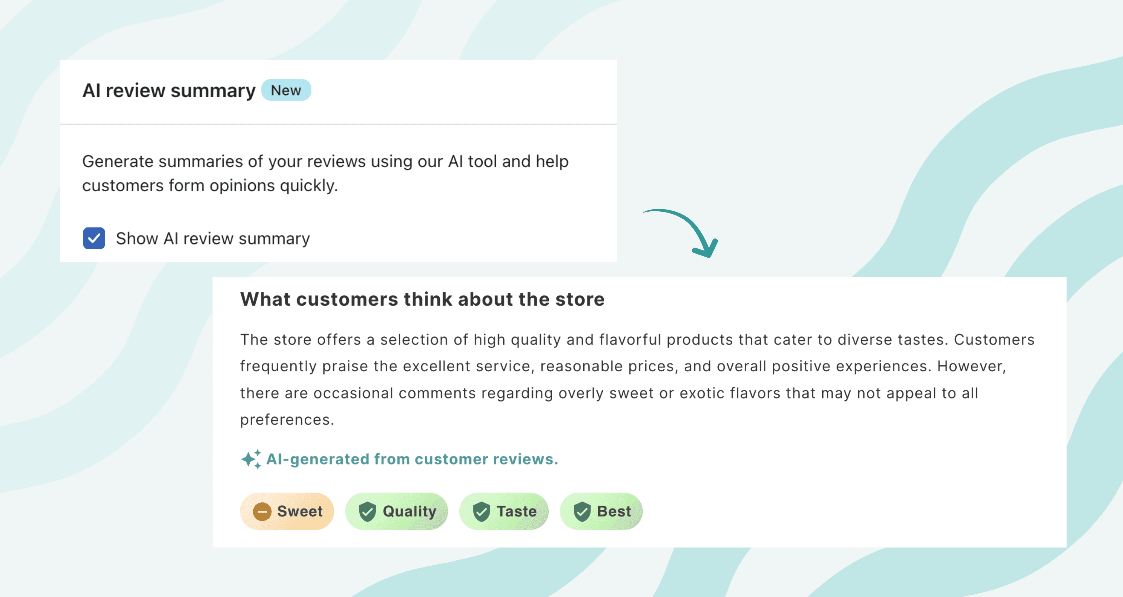 Well, now they can. With our shiny new AI tool, you can generate concise summaries of your reviews, streamlining the decision-making process for your buyers so your customers can make better decisions in less time—which means more sales for the stores.